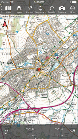 Pokud klepnete na výsledek vyhledávání v seznamu, bude načten na mapě jako bod cesty a vrátíte se na hlavní obrazovku. Příklad je uveden níže: