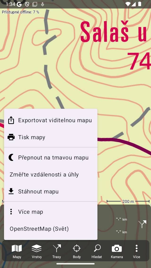 Stáhněte si mapy. Pokud klepnete na tuto položku, můžete si stáhnout mapy pro offline použití.
