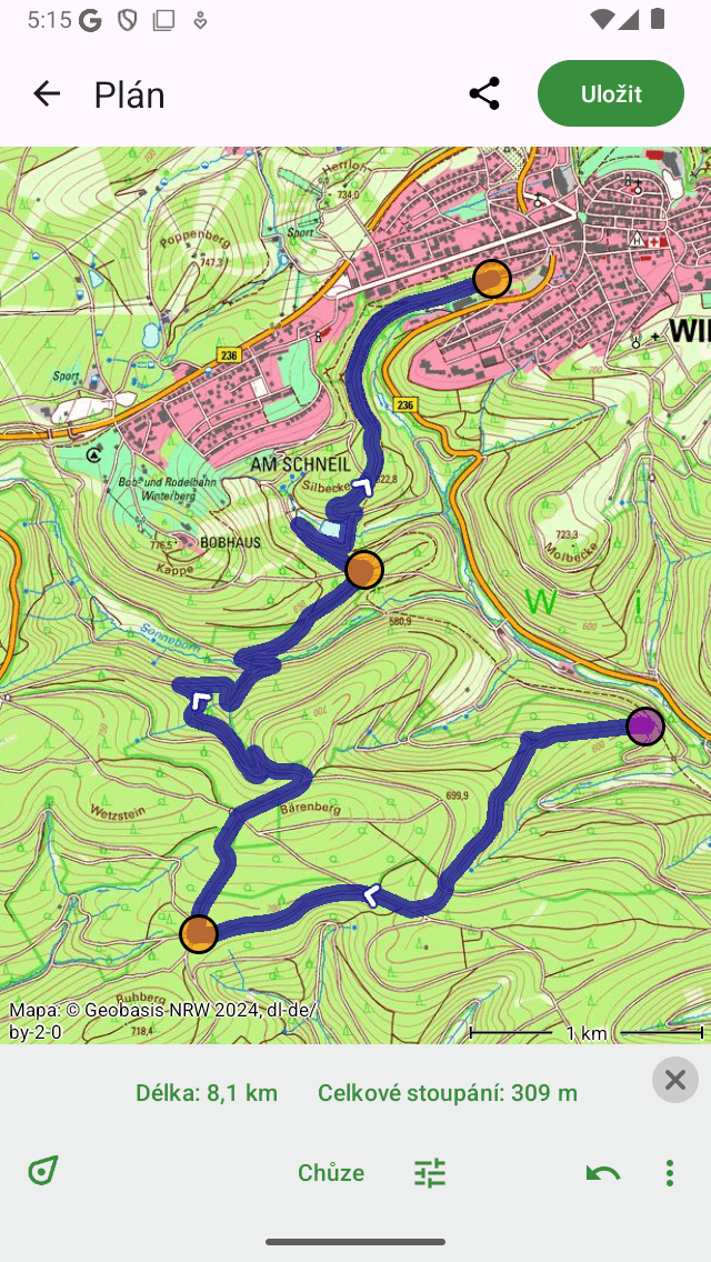 Pokud jste připraveni upravit trasu, můžete klepnout na „Uložit“ v pravém horním rohu obrazovky.