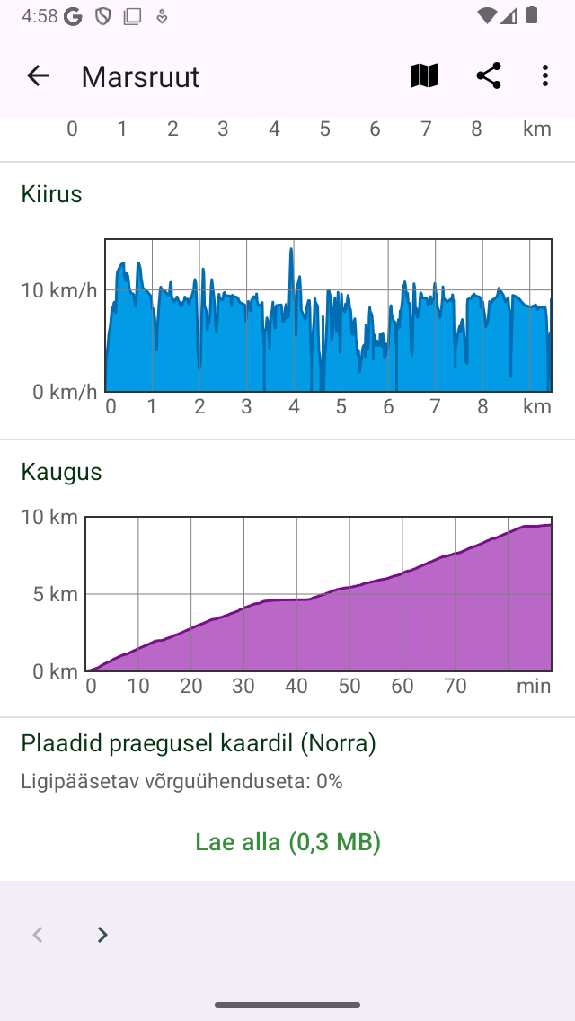 Kui olete allalaadimisnuppu koputanud, näitab nupp, kui palju plaate jääb alla laadimiseks. Allalaadimise saate katkestada, puudutades nuppu „Peata allalaadimine”. Kui kõik marsruudiga seotud kaardiplaadid on alla laaditud, kuvatakse nupp „Täielikult alla laetud”.