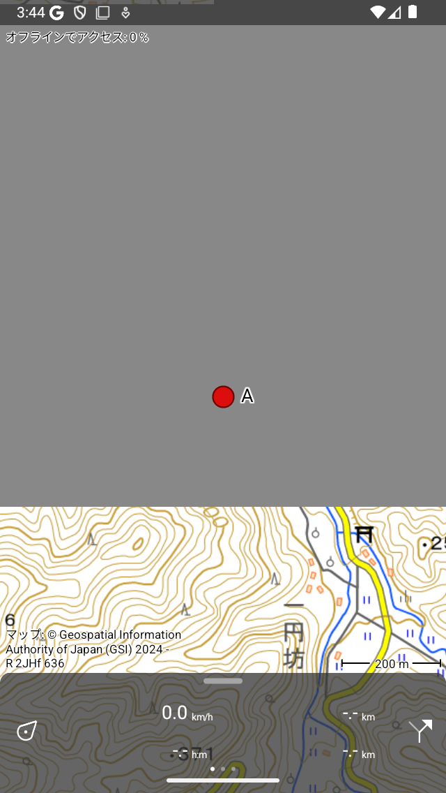 例として、タイトルとして「A」を入力します。「保存」を押すと、ウェイポイントがデバイスに保存され、下図のようなタイトルで地図上に読み込まれます。