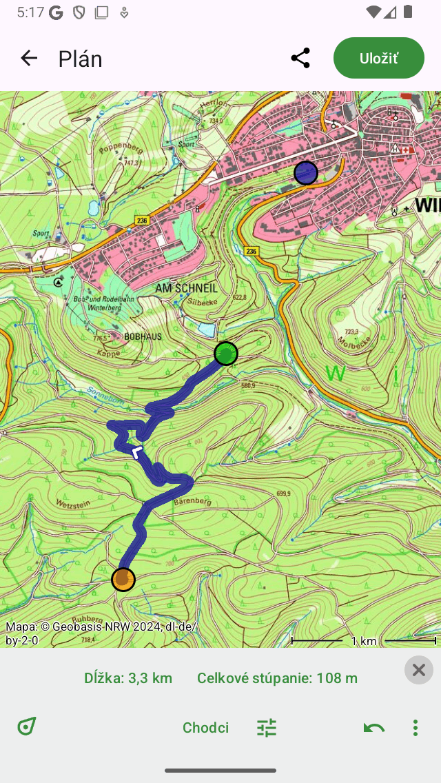 Teraz môžete rozšírenú trasu uložiť stlačením tlačidla „Uložiť“ v pravom hornom rohu obrazovky. Uložená trasa bude vždy uložená ako nová trasa.