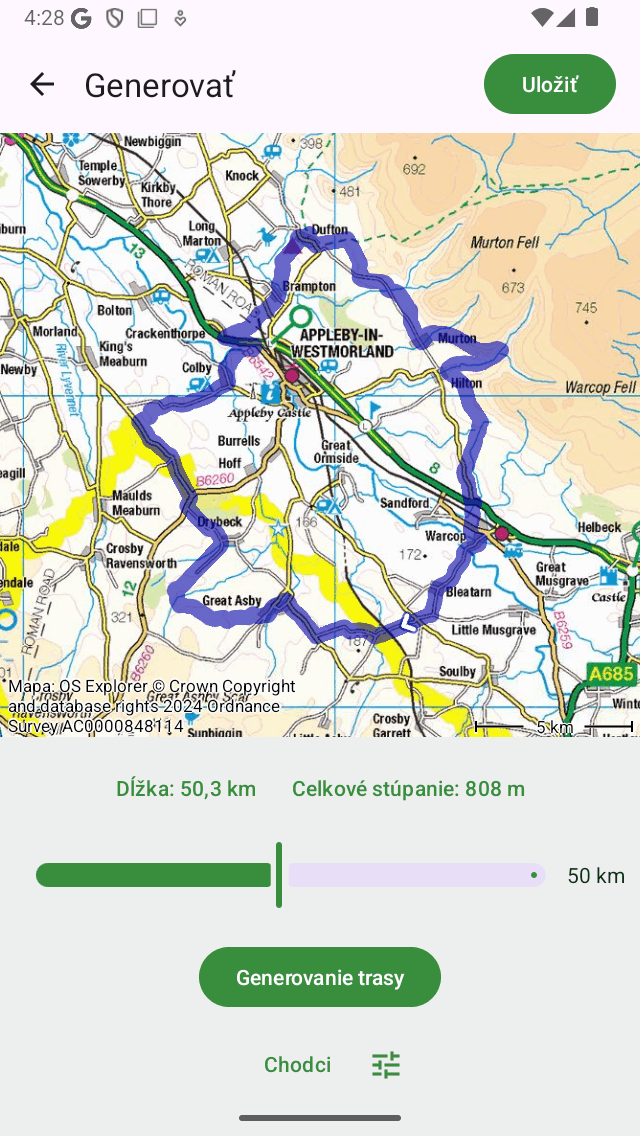 Bola vytvorená trasa s požadovanou dĺžkou 50 km.¶