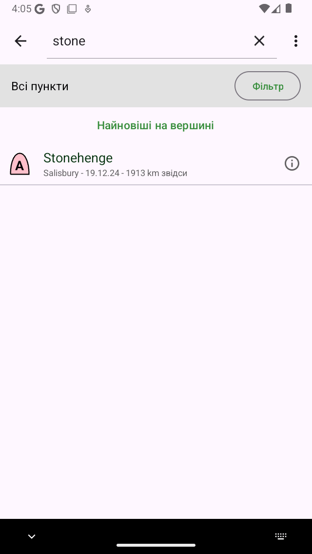 Пошук маршрутних точок за ключовим словом «камінь».¶