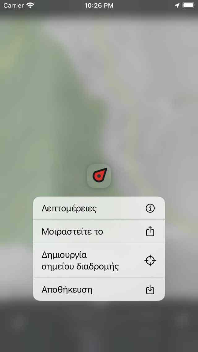 Πατώντας “Δημιουργία σημείου σημείου” στην κάτω γραμμή εργαλείων της τρέχουσας οθόνης τοποθεσίας μπορείτε να δημιουργήσετε ένα σημείο αναφοράς στην τρέχουσα θέση. Η διαφορά μεταξύ του πατήματος «Αποθήκευση» είναι ότι είναι πιο αργή, αλλά τώρα θα εμφανιστεί μια οθόνη δημιουργίας σημείου αναφοράς στην οποία μπορείτε να εισάγετε τον τίτλο, την περιγραφή και να αλλάξετε το εικονίδιο. Αυτή είναι η ίδια οθόνη που εμφανίζεται κατά τη δημιουργία ενός σημείου αναφοράς από το χάρτη.