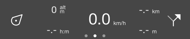 Dashbordet består av tre elementer: posisjonsknappen, et panel med tellere og ruteknappen. Disse elementene blir diskutert mer detaljert nedenfor. Hvis du sveiper dashbordet oppover, blir menyen synlig.