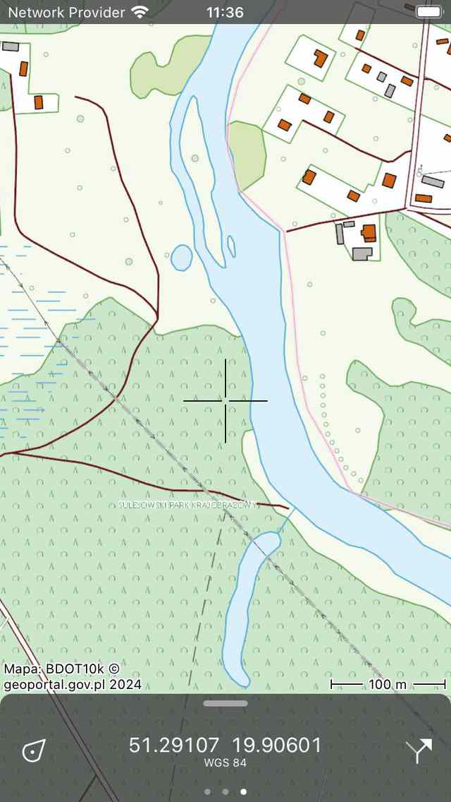 Jeśli panel współrzędnych jest załadowany, na środku mapy pojawi się krzyżyk, jak pokazano poniżej: