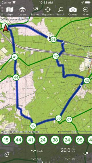 Trasa jest zaplanowana na Twoim urządzeniu, dlatego nie potrzebujesz połączenia z Internetem do planowania tras przez sieć węzłów rowerowych.