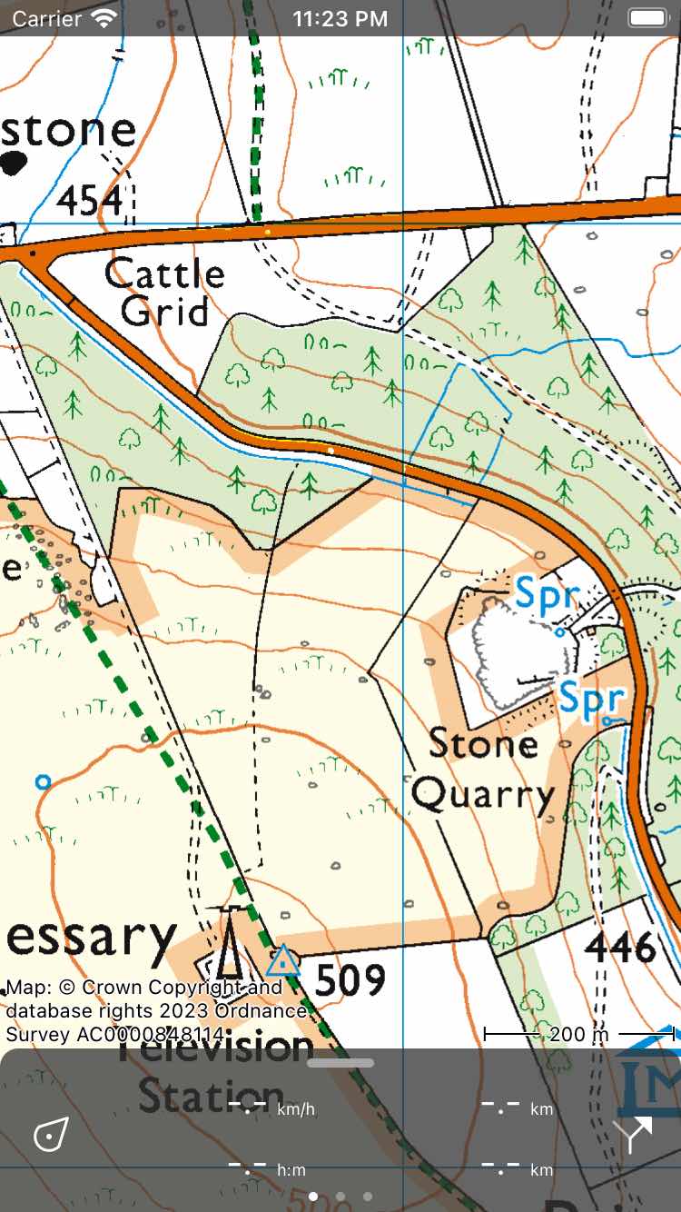 Câmera - Se você tocar nesse botão, a câmera será aberta. Se você tirar uma foto, um waypoint será criado em sua localização atual e a foto será adicionada a esse waypoint.