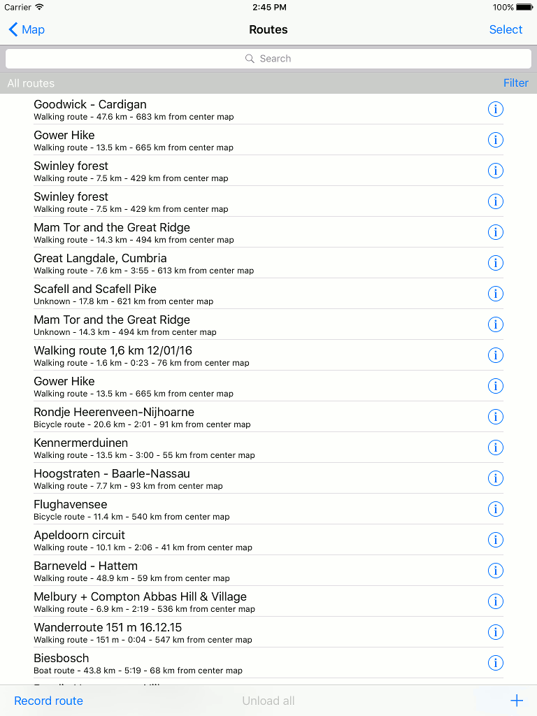 Să presupunem că aveți un număr de dispozitive care conțin fiecare un număr de rute și puncte intermediare. Acum, activați sincronizarea iCloud pe toate aceste dispozitive. Pe fiecare dispozitiv, combinația tuturor rutelor și punctelor intermediare va fi acum accesibilă. În cazul în care rute similare au fost disponibile pe diferite dispozitive, s-ar putea întâmpla ca unele rute să apară de mai multe ori pe ecranul rutelor după sincronizare. Puteți elimina manual aceste duplicate, iar acest lucru trebuie făcut o singură dată.